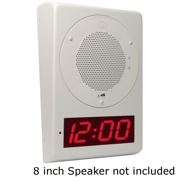 The Wall Mount Clock Kit (RAL 9003, Signal White) enables the CyberData V2 VoIP Ceiling Speaker to be upgraded to a highly visible public address device with a time display. The large display characters are easily read and adjust for ambient light conditions.