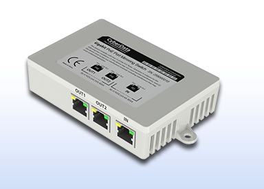 The CyberData 011258 2-Port PoE Gigabit Port Mirroring Switch is for network diagnostics while maintaining PoE or PoE Plus connection. It’s powered from a single 802.3at or 802.3af network switch and passes that power through to one or two of the downstream switch ports.