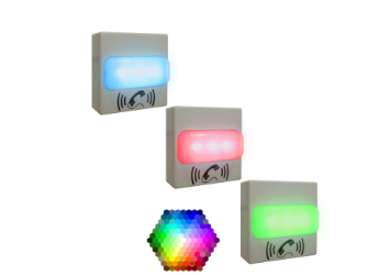 The CyberData wall-mounted SIP RGB (Multi-Color) Strobe operates as a visual alerting device. The device can be set up as part of a ring group (call group) with the Strobe engaged as notification of incoming calls.