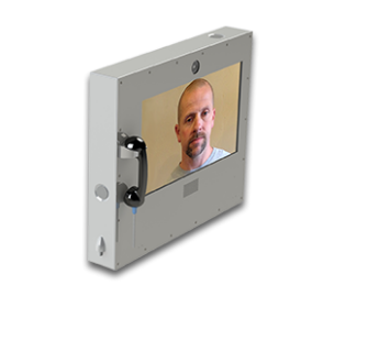 Cyberdata DX80 Secure Case Kit 011416 protects a Cisco DX80 from damage by housing it in a steel enclosure with security screws holding down its stainless steel front cover.