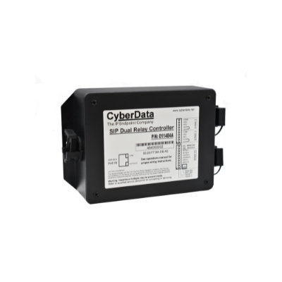 The Cyberdata SIP Dual Relay Controller is a two-in-one SIP notification device and SIP secure access device that helps to lock and unlock doors, as well as create a preprogrammed notification based on a trigger such as heat or humidity.