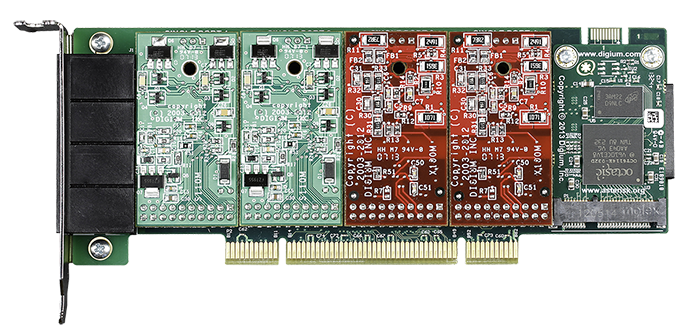 The A4 Series Digium 1A4A04F 4 Port 2-FXS/2-FXO PCI Card with EC for 3.3/5.0V