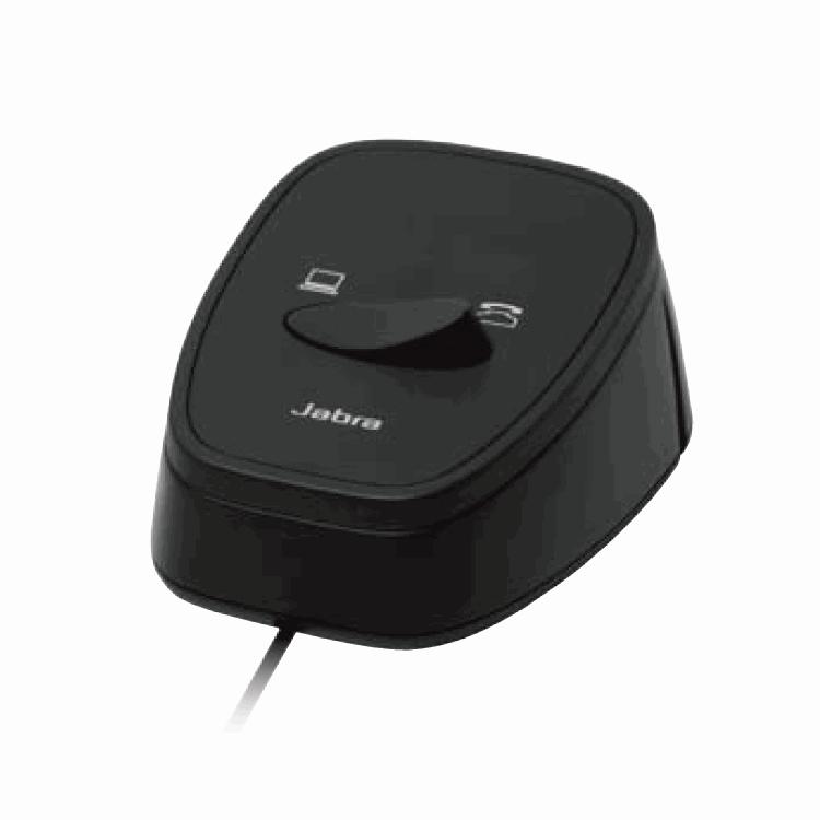 The Jabra Link 180 is a manual switch that lets you switch between desktop phones and softphones without switching headsets