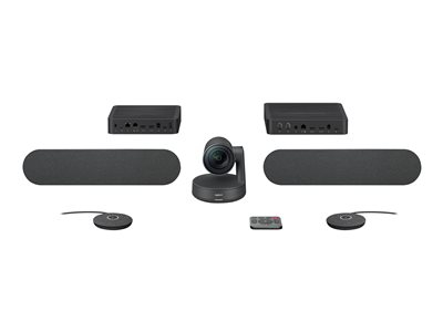 The Logitech Rally 4K PTZ camera, Rally speakers(2), Mic Pods (2), Table Hub, Display Hub, Remote Control, Power Adapters, 2-yr limited warranty