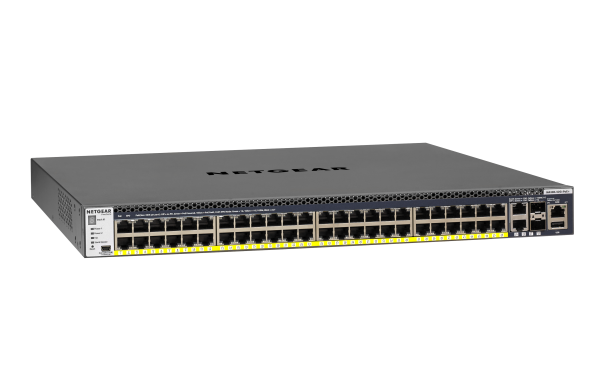NETGEAR M4300-52G-PoE+ (1,000W PSU) (GSM4352PB) Stackable Managed Switch with 48x1G PoE+ and 4x10G including 2x10GBASE-T and 2xSFP+ Layer 3. Part of Netgear’s ProSAFE M4300 Intelligent Edge Series, the M4300-52PB has been designed for mid-enterprise edge and small and medium size business (SMB) core deployments.