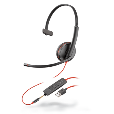 The Plantronics Blackwire 3215 is a corded, one-ear versatile headset that offers USB-A connectivity as well as a 3.5 mm jack. The Blackwire 3215 USB-A headset is perfect for companies that use softphones on a regular basis.