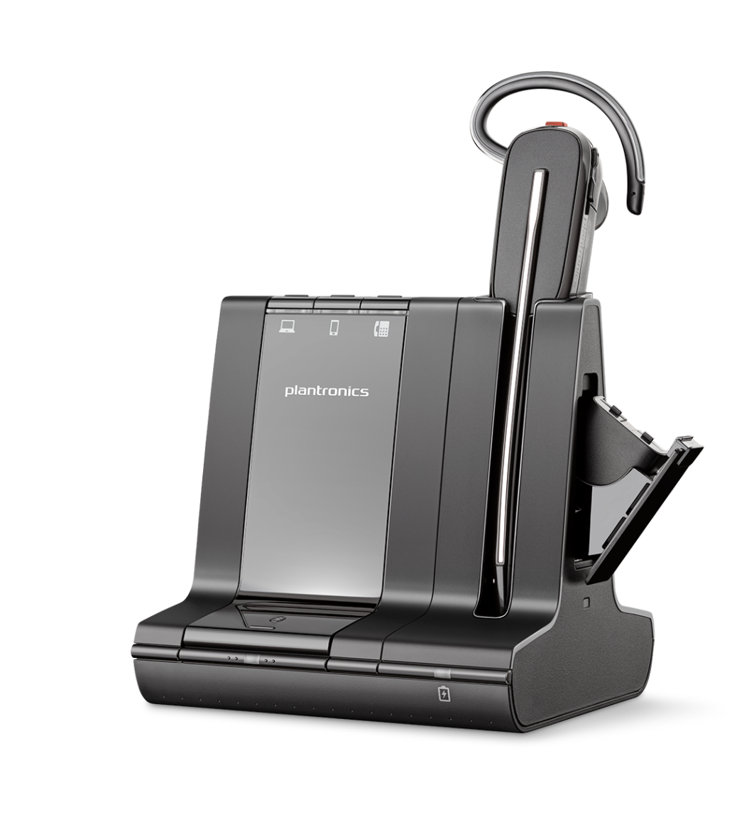 Plantronics Savi 8245 Office Convertible Headset is a reliable HD headset with unlimited talk time thanks to the hot swappable battery with three configurable wearing styles.