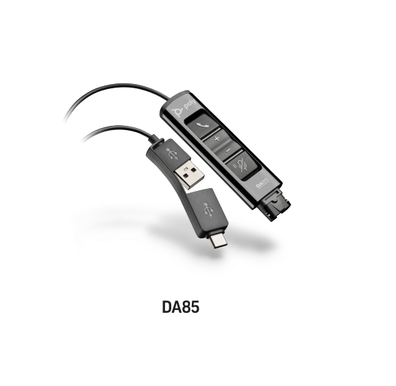 The Poly DA85 USB to QD Adapter 786C7AA is digital adapter that keeps call center employees sounding crystal-clear from home or in the office. With easy USB-A or USB Type-C® connections, they adjust audio to each specific Poly headset, offering quality calls.