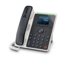 The Poly Edge E100 IP Desk Phone with NA Power Supply 2200-86980-001 with 2-line keys supporting up to 8 lines, features, and contacts, keys offers the perfect user experience for office and hybrid workplaces.