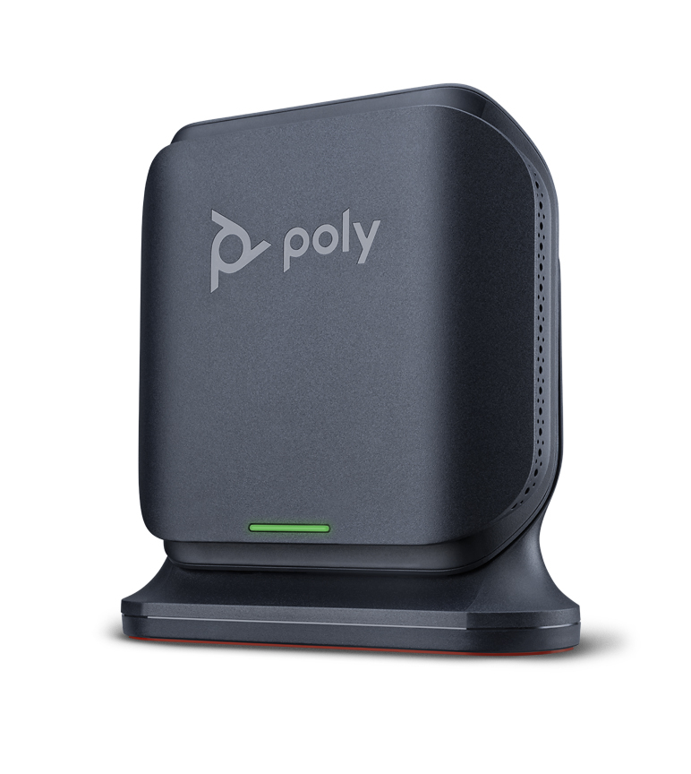 The Poly Rove B2 Single/Dual Cell DECT Base Station is a secure base with DECT redundancy that supports up to 20 Poly Rove handsets per base.