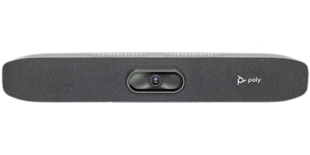 The Poly Studio R30 USB Video Bar-US 842D2AA#ABA is a two-in-one 4K video camera with an integrated noise-cancelling speaker.