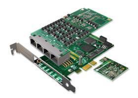 The Sangoma A104DE is a quad port T1/E1J1 PCI Express card with on board hardware echo cancellation that supports up to 16.4 Mbps of full duplex data throughput or up to 240 voice calls using up to eight T1, E1, or J1 lines.