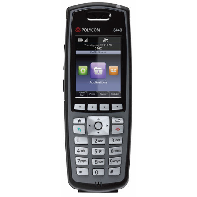 The Spectralink 8440 Black WiFi Phone is an open SIP platform 802.11a/b/g/n WiFi phone which features a WebKit browser and XML API, and Push-To-Talk (PTT) functionality. When used with Microsoft Lync, it also supports instant messaging, presence, and Outlook calendar integration.