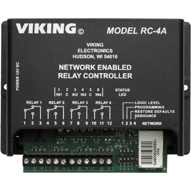 The RC-4A Network Enabled Relay Controller allows remote management of four relays and monitoring of four contact closure inputs through a web interface, offering flexibility in controlling and checking the status of electrical systems.